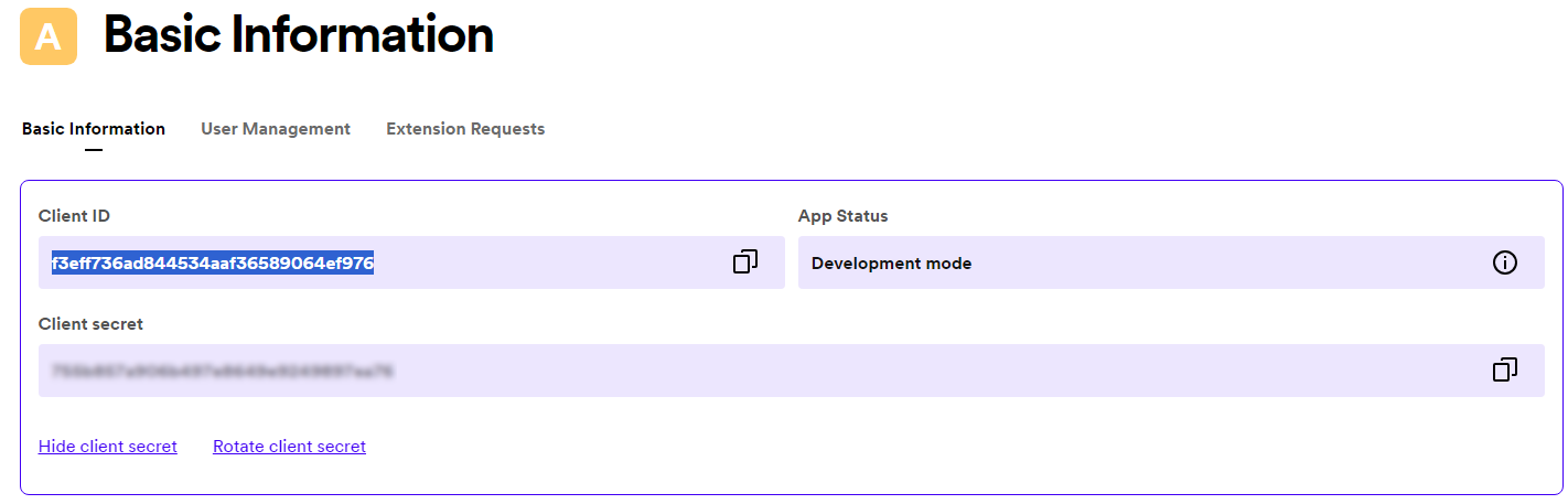 Copy the Client ID and the Client secret of your newly created app.