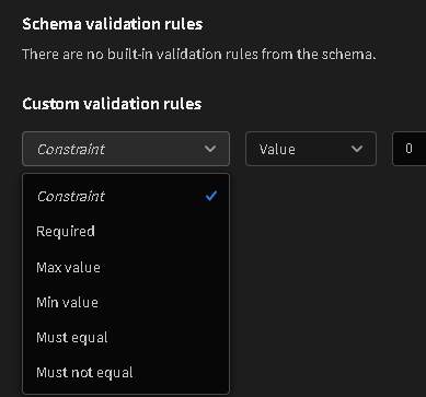 I have a similar issue on Safari. Form allows text input, but Chrome does not. No regex option under validation. |