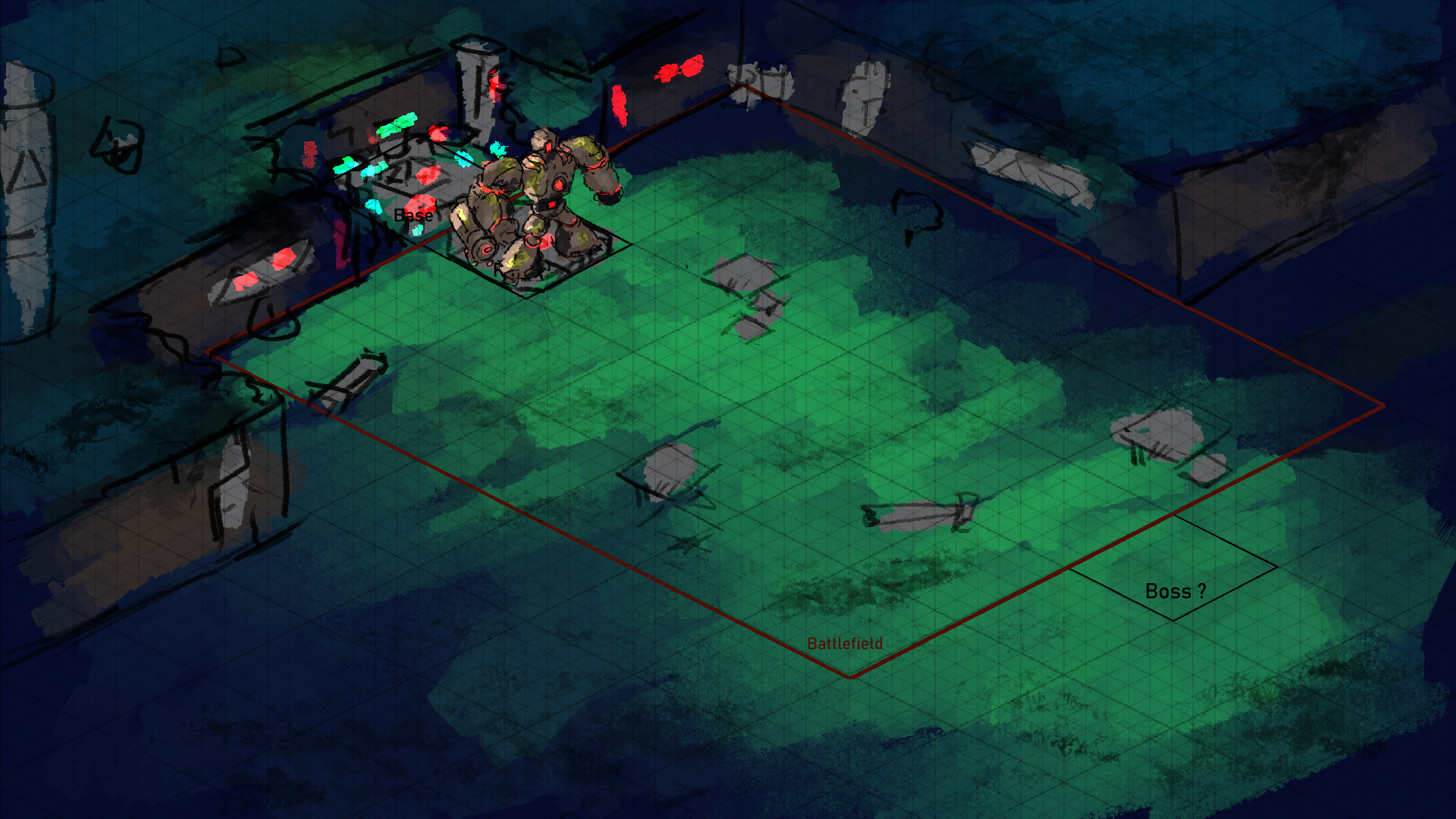 Use your 🖱️ mouse (🎮 Right Stick, 📱 touchscreen) to lead your Frames into battle! Collect scrap to buy upgrades, and beat the waves of enemies. Press 🖱️ LMB (⌨️ Space, 🎮 West Button) to use your Golem's upgraded arm. Persevere through enemy waves and beat mini-bosses until night 10.
