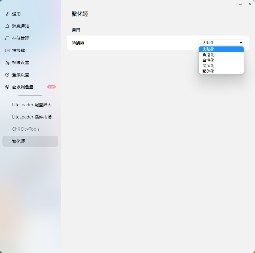本插件会调用繁化姬 API 对聊天消息进行简繁转换
