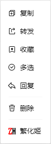 - 在需要简繁转换的聊天消息上右键,点击繁化姬
