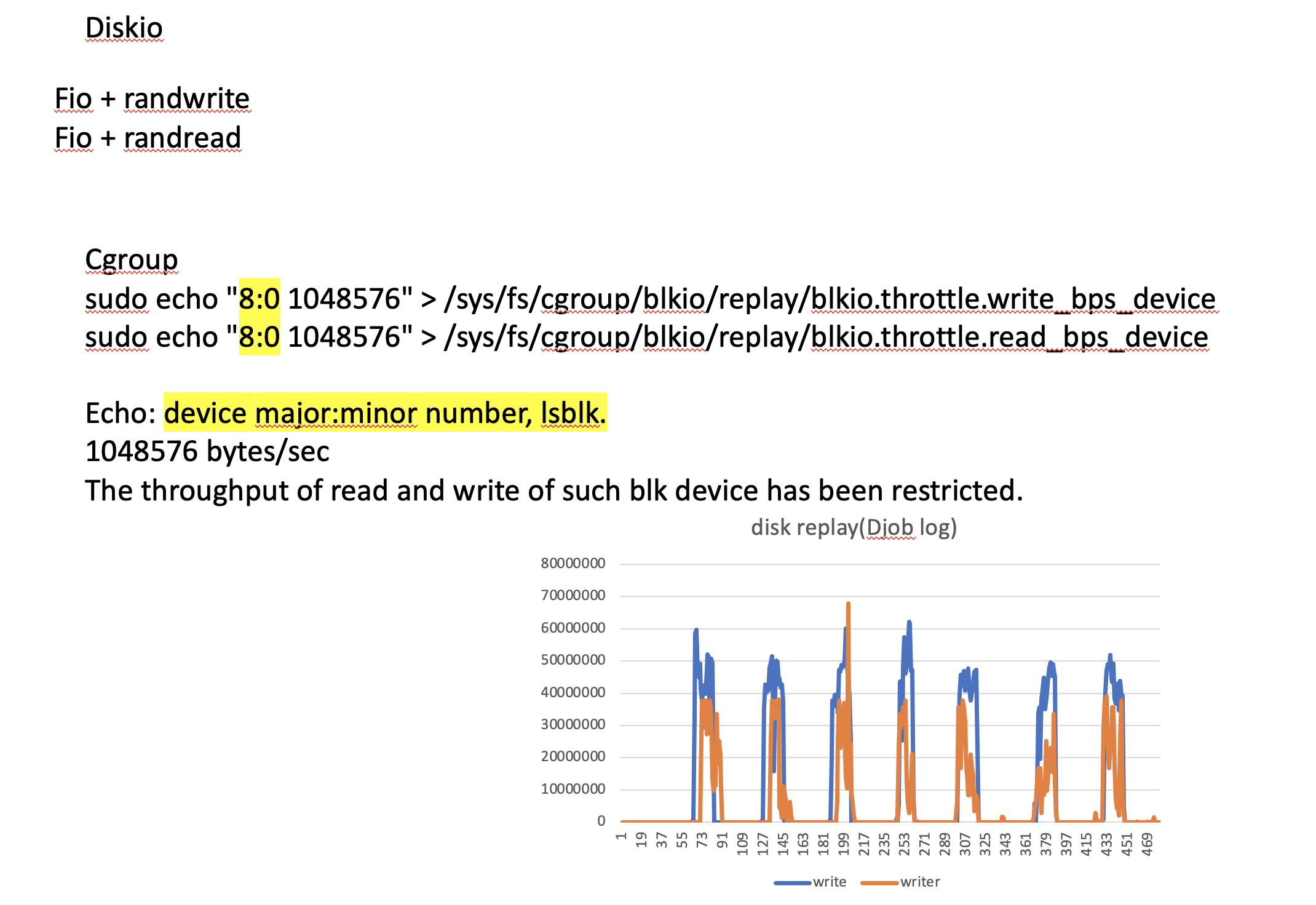 diskio we use cgroup to control, however we are using fio.